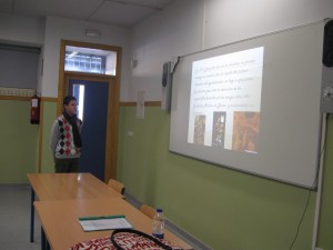 Leila Galán exponiendo su trabajo sobre Los Templarios